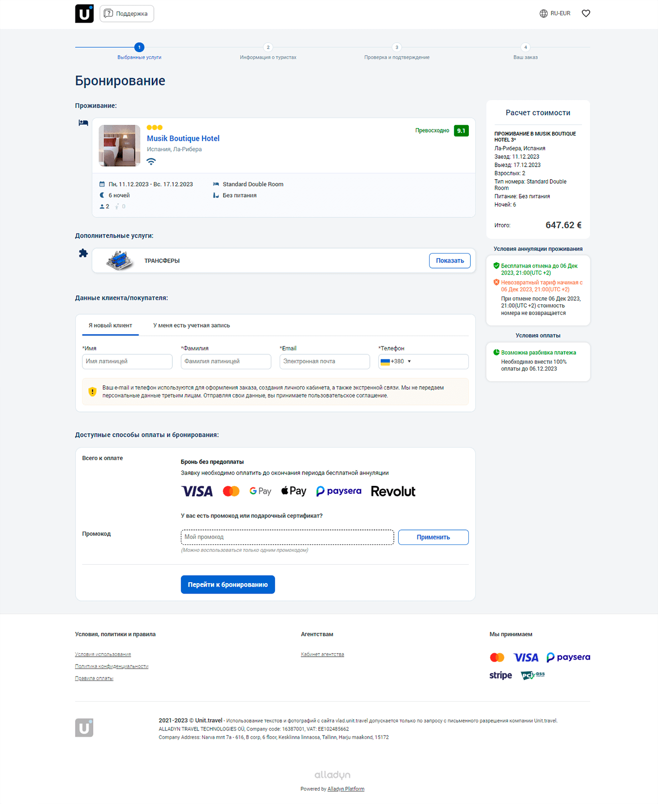 Онлайн оплата происходит на счет торговой площадки Unit.Travel, где происходит автоматическое разнесение платежа, тем самым часть суммы уходит поставщику, а остаток удерживается в пользу тревел-менеджера до наступления даты окончания услуг по заявке.